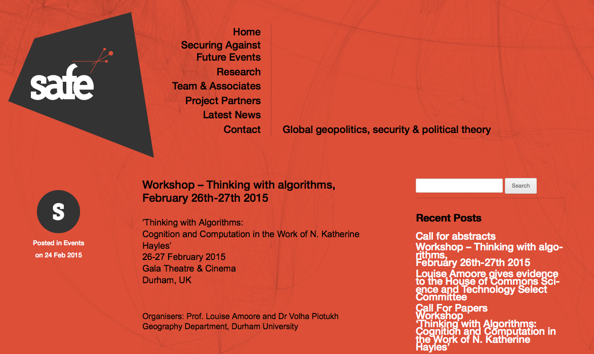 Back in February 2015 I was lucky enough to present a paper at a workshop in Durham organised by Louise Amoore and Volha Piotukh from the Durham University Geography Department. Thinking with Algorithms: Cognition and Computation in the work of N. Katherine Hayles (which featured Hayles as a guest and keynote speaker), was an incredibly useful forum in which to present the first conference draft of my Language in the Age of Algorithmic Reproduction paper. As well as some very welcome positive comments, I also had some incisive, critical feedback which – quite rightly – highlighted my selective use of the Walter Benjamin essay. I had indeed conveniently skirted around the issue of the fascist aestheticisation of politics, which forms much of the second half of the essay, and have devoted much time over the last few months trying to find an answer to Martin Coward’s post-panel question. To be honest, I’m still pondering…